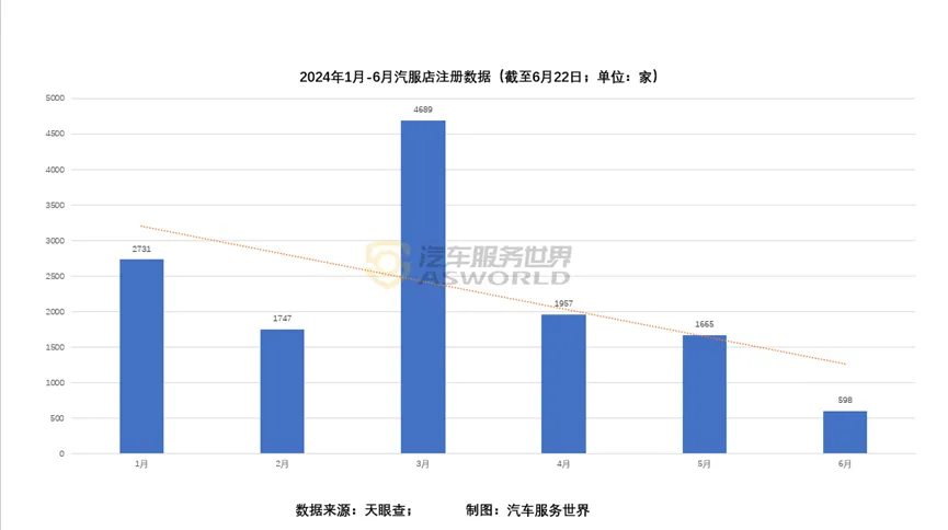 作者 | 拉面安 来源 | 汽车服务世界(ID:asworld168) 欢迎供稿 | 陈凯:15827582449 转眼间,2024年上半年已彻底过去,“会更难”终究成为事实。 一方面,开年短暂的生意复苏后,便是连续几个月的“产值、进厂台次”双双下滑,“半年超6000家门店转让”以及“新开店数量持续减少”的数据也能证明生意不好做这一点。 另一方面,继集群车宝开年就宣布破产的消息后,过去几个月的行业总体来说,坏消息多于好消息。“自带配件纠纷频发”、以及“修理厂与险企的矛盾加剧”,还有流量平台门槛的不断提高等行业热议事件和变化,也不可避免给很多人制造了更多焦虑;雄心壮志的头部企业并未完全循着开年制定的“快速”发展路线走,也透露了行业在理性思考下隐藏着焦灼。 不过,越是这种时候,努力者创造的价值才越能够凸显出来。 在流量重塑和价格体系动荡的影响之下,以猫虎狗、华胜、百援、小拇指等为代表的影响力企业,虽然在不少时候在一些动作上保持一致,但围绕“新流量、新能源和新增量”历史机遇,各家今年也有关键的战略抉择更新;而40万修理厂的分化也越来越明显。抓住时代机遇、又能够及时回归行业本质的那类企业逆势上扬,沉溺于“淡季生意”一蹶不振、被负面情绪裹挟着走的企业越来越难。 本文梳理了今年上半年的最新市场现状、热议事件以及汽服及汽配企业的差异化新动态等内容,助力大家整理思绪、拨开迷雾朝着正确的方向继续前进。 行业的下一步,并不是末路狂欢,而是“创新与转型”浪潮过后被掀开的新生态序章。 一、市场现状 NO.1 汽车保有量超3.45亿;新能源乘用车零售渗透率破50%…后市场需求结构变化或加速到来 据公安部最新数据,截至2024年6月底,全国汽车保有量超3.45亿辆。 其中,新能源汽车保有量达2472万辆,上半年新注册登记的新能源汽车有439.7 万辆,同比增长 39.41%,创历史新高。 此外,结合乘联会数据还能看到一个变化:今年上半年,新能源车市场正迅速扩大。今年4月上半月,国内新能源乘用车零售渗透率正式突破50%、首次超过燃油乘用车;而到了5月第三周,国内新能源乘用车的终端上险渗透率更达到了50.2%,首次超过燃油车。 不难发现,上半年在“以旧换新”、“新能源下乡”等政策支持以及车企等各方发力的情况下,国内新能源车再度迎来逆天发展。 对汽车后市场而言,则意味着三个可能的变化: ·新能源汽车的保有量加速增加,将直接带动新能源汽车后市场的加速增长; ·燃油车市场份额的减少,将使得燃油车后市场的增长速度放缓,甚至在某些领域出现萎缩; ·独立售后的转型升级压力会越来越大。为了适应市场需求的变化,汽车服务门店的服务结构调整期或将提前到来。 NO.2 汽修门店注册且在册数为47万,相较巅峰期减少近22万家 来自天眼查的数据。 锁定汽车维修相关关键词,并勾选企业状态“在业和存续”后,我们发现,截至今年7月5日,汽修门店注册且在册的数量为47万。而在巅峰时期,这一数据在70万左右。 由此可见,在近些年后市场的洗牌升级过程中,近22万家汽服门店已经消失。 具体到2024年的汽服店新增情况。上半年新增的汽车维修门店数据在1.3万家以上,其中1-5月分别新增汽车维修相关企业2731家、1747家、4689家、1957家、1665家,6月1日-6月22日,新增汽车维修相关企业598家。